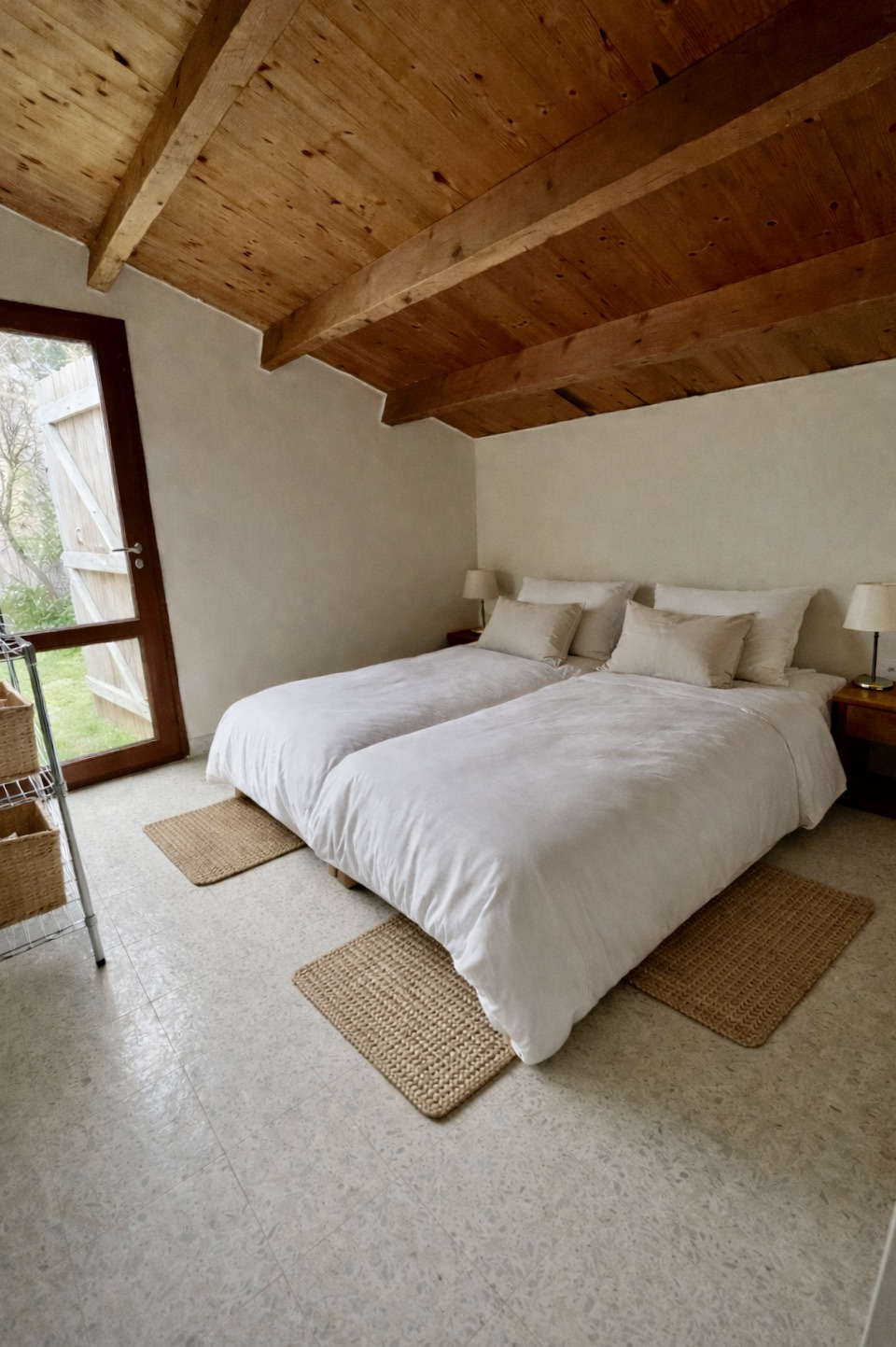 - chambre 3 avec deux lits de 80, accés direct au jardin.